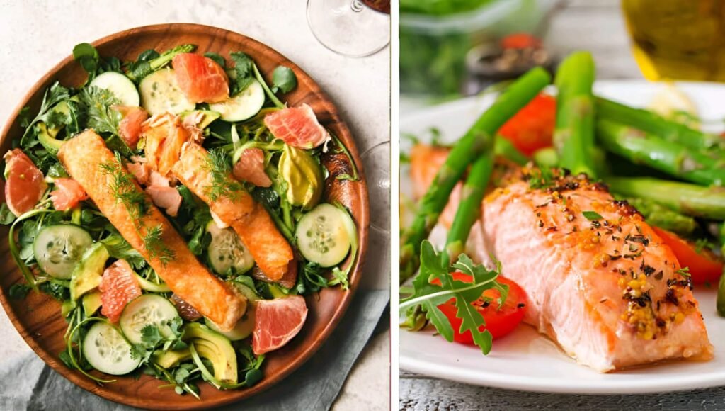 We are providing you with a different suggestion for something you might create in a short amount of time. Put the raw salmon fillets and broccoli asparagus on a baking sheet to cook. Subsequently, pour a little of the lemon juice, olive oil, and salt over it to give it an appealing taste and juice. Following this, bake it for a further fifteen minutes, and it will be ready to eat. You might consume it with the whole family or by yourself. It is an amazing thing to eat to stay the evening meal.